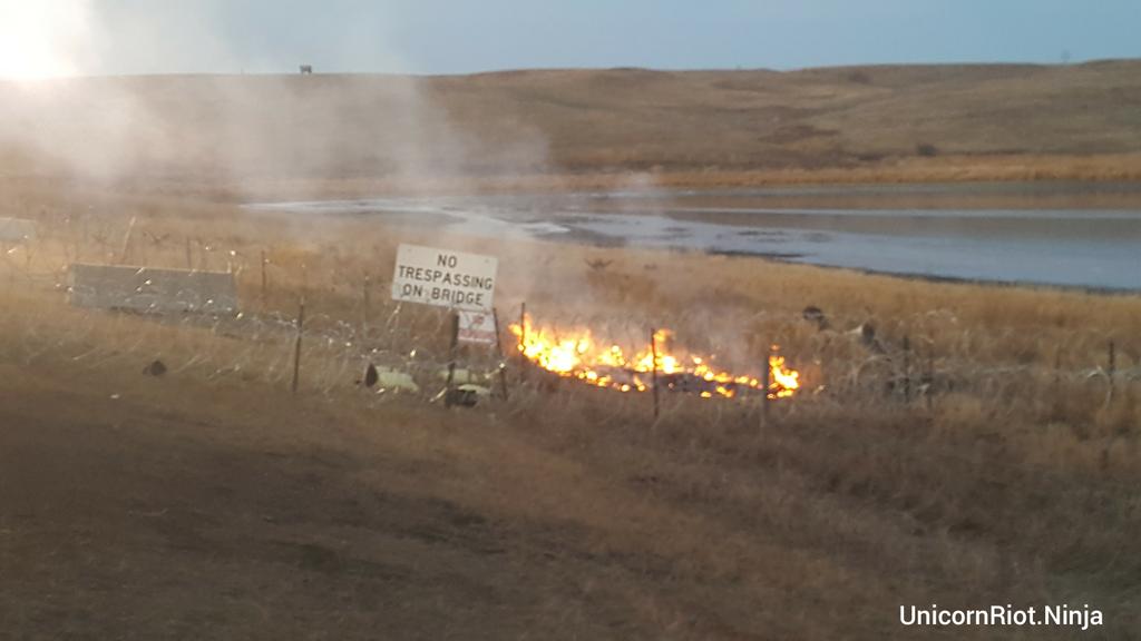 Demonstrators protesting against Dakota Access Pipeline say they are trapped on a bridge as North Dakota police fire tear gas, water cannon and concussion grenades at them, according to live reports on social media.