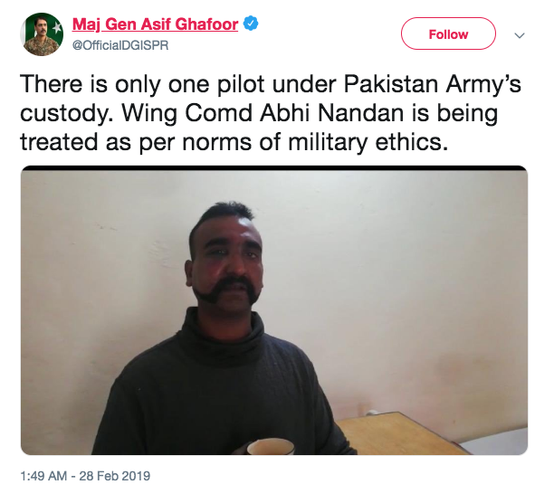 Indian pilot, filmed identifying himself as Commander Abhinandan