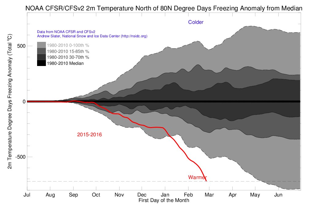 The data for February is so overwhelming that even prominent climate change skeptics have already embraced the new record. Writing on his blog, former NASA scientist Roy Spencer said that according to satellite records—the dataset of choice by climate skeptics for a variety of reasons—February 2016 featured “whopping” temperature anomalies especially in the Arctic. Spurred by disbelief, Spencer also checked his data with others released today and said the overlap is “about as good as it gets.” Speaking with the Washington PostSpencer said the February data proves “there has been warming. The question is how much warming there’s been.”