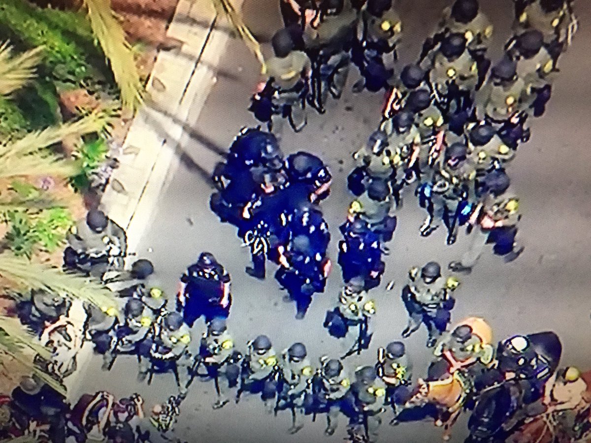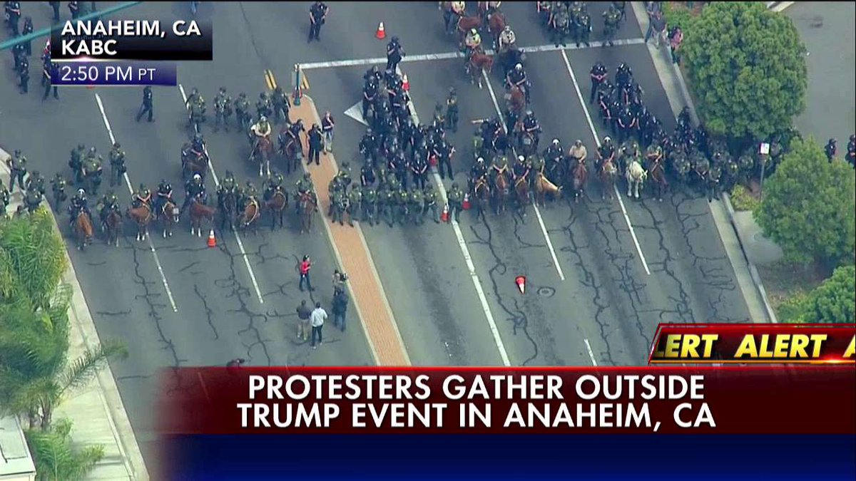 are currently attempting to subdue protesters outside in Anaheim,