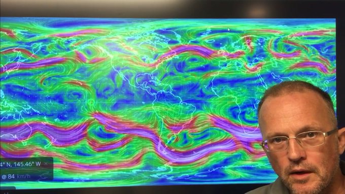 “The jet stream in the Northern Hemisphere has crossed the equator and joined up with the jet stream in the Southern Hemisphere. This seems like new behavior, and indicates that climate system mayhem is ongoing. Our climate system behavior continues to surprise us in new and scary ways that we have never anticipated, or even seen before. Welcome to climate chaos. We must declare a global climate emergency …”
