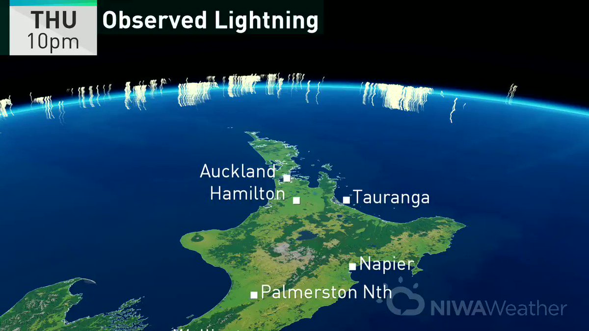 1.40pm: MetService say there's been 471 lightning strikes over the upper North Island.