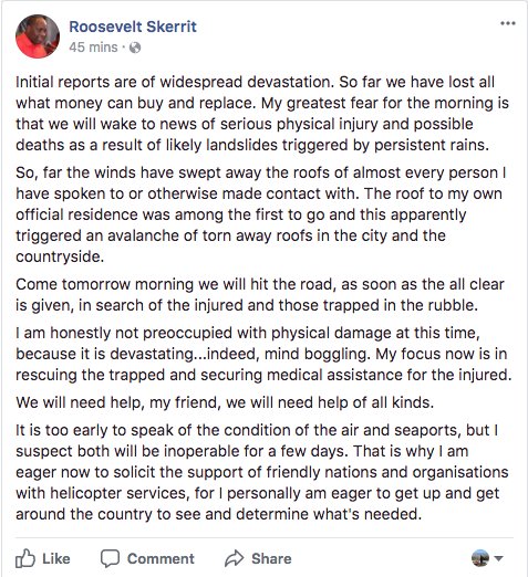 Heartbreaking statement from Roosevelt Skerrit, Prime Minister of Dominica: