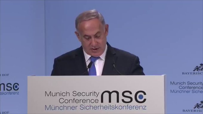 The Israeli leader used the platform of the conference in Germany to attack Iran, describing it as the world’s greatest threat.