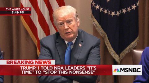 Per Reuters  Trump urged lawmakers to pass a comprehensive gun control bill as the national conversation surrounding gun control - a conversation that was triggered by a shooting at Marjory Douglas Tillman High School in Parkland Fla. The shooting left 14 students and 3 faculty dead, and more than a dozen injured.