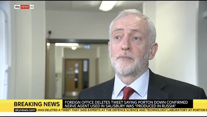 It is lamentable that Jeremy Corbyn is now playing Russia’s game and trying to discredit the UK over Salisbury attack.