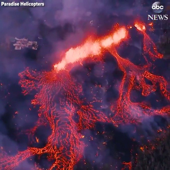 volcanic fissure with lava fountains as high as about 70m in Leilani