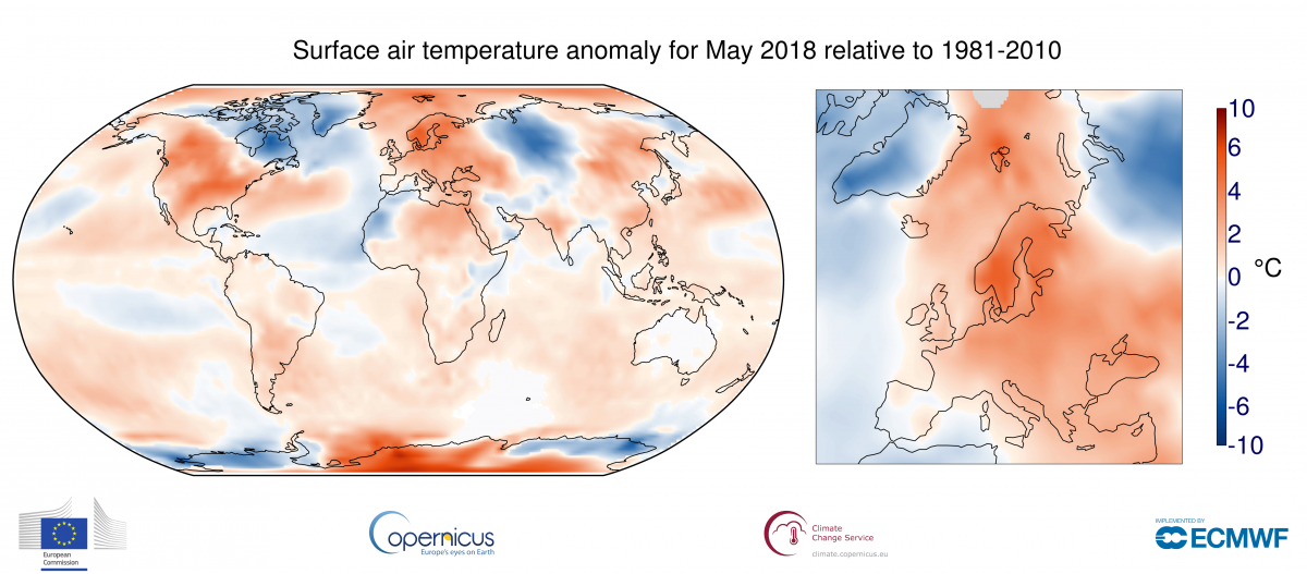 2018 has likewise become by far the warmest May on record. The