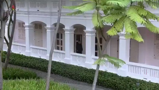 Shortly after Trump and Kim shook hands in front of the press for the first time, the duo walked into a private room where a North Korean military official stood. Footage released through North Korean state television shows Trump extending a hand to the official, who simultaneously lifted his hand in salute. Trump mirrored the officer and saluted back before shaking the officer's hand.