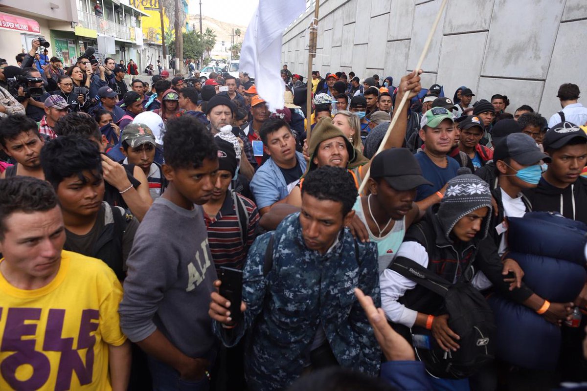 #EnEsteMomento unas 200 personas de la #CaravanaMigrante intentan cruzar la garita de San Ysidro en #Tijuana para llegar a Estados Unidos. La