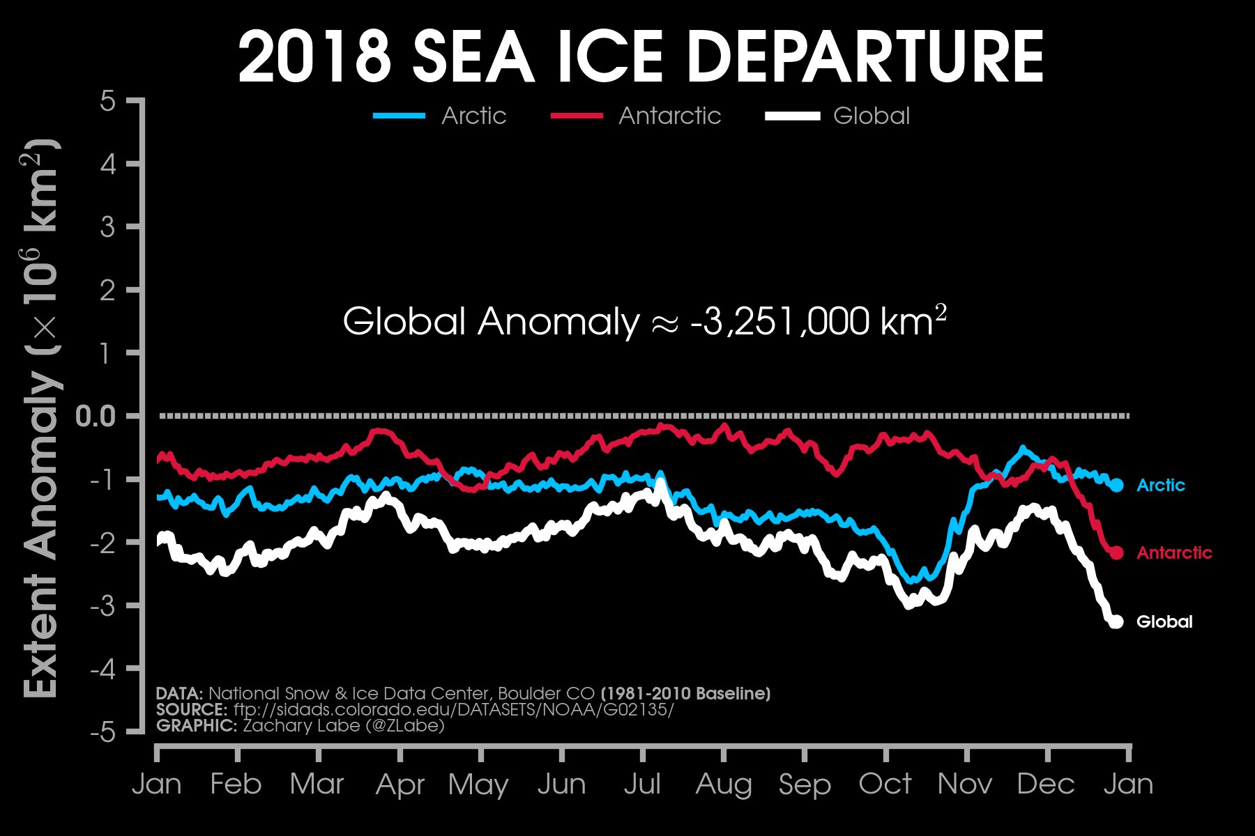 Sea ice ending the year on a negative note, especially for the Antarctic.