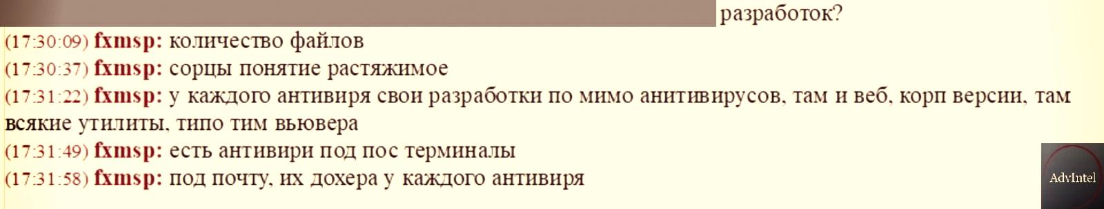 (1:27:17) uwerty5411@exploit.im: there are 350 developments of the company, antivirus, kernels, artificial intelligence, web protection, panels, everything that a company has, even those developments that only large corporations